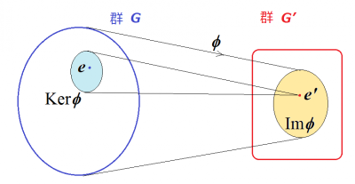 商群$$G/\textrm{Ker}\phi $$から群$$G'$$中の$$\textrm{Im}\phi $$への同型写像になる.